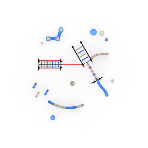 Floating Tunnel Tower / Frog Pad Challenge Ladder /Ring Swing Challenge Ladder / Cylinder Spinner / Boulder Climber / Single Sectional Slide / Cargo Climber / Climber / Climber / Crab Pods / Saddle Slide / Cylinder Spinner